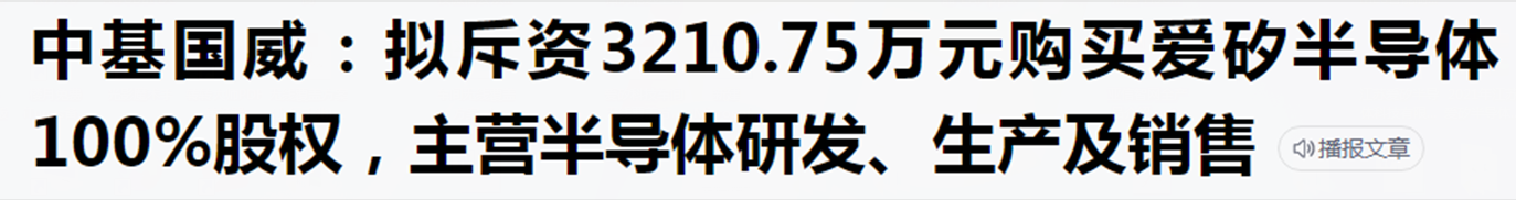 關于新三板公司中基國威(873030.NQ)于近日發(fā)布了購買資產的公告。公告顯示,上海中基國威電子股份有限公司(以下簡稱“公司”或“中基國威”)擬收購上海愛矽半導體科技有限公司...; 查看全文 >